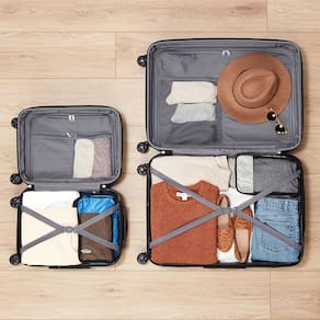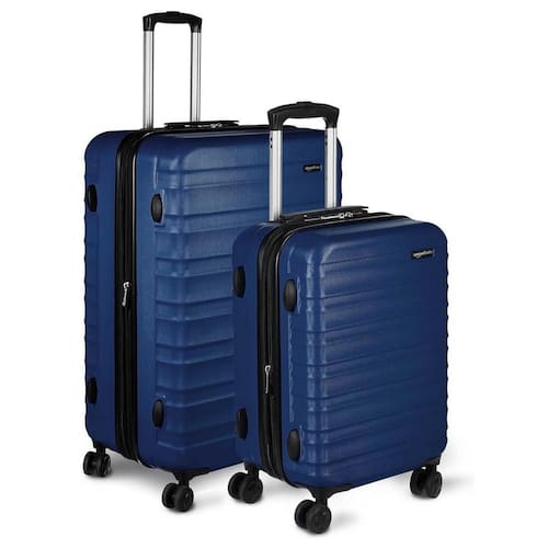 Amazon Basics Hardside Spinner, bagagem de mão expansível com rodas, Azul marinho, Conjunto de 2 peças - Durável e confiável: estas malas são feitas com um invólucro rígido ABS extragrosso, oferecendo resistência confiável e um acabamento resistente a arranhões para viajantes frequentes - MOBILIDADE SEM ESFORÇO: Deslize suavemente pelos aeroportos com estas malas com rodas, uma alça telescópica e uma alça curta conveniente para transporte perfeito durante sua viagem - Capacidade expansível: as malas rígidas oferecem espaço expansível para até 15% mais espaço de embalagem para 76 cm e 25% mais espaço de embalagem para 53 cm, permitindo que você encaixe itens adicionais sem comprometer a organização e o armazenamento - Interior organizado: estas malas de viagem ajudam a manter seus itens essenciais em ordem com um organizador interno, com uma divisória e três bolsos com zíper - Design espaçoso: o conjunto de 2 peças é projetado para viagens de negócios ou férias, com amplo espaço em ambos os tamanhos. O pequeno mede 37,6 x 25,4 x 55 cm e o grande mede 52,6 x 32 x 78 cm, incluindo as rodas