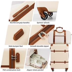 - Combinando charme vintage com funcionalidade contemporânea, nosso design de bagagem resume elegância e artesanato de uma época passada. Ele integra perfeitamente rodas giratórias modernas para facilitar a mobilidade e inclui travas aprovadas pela TSA para maior segurança.