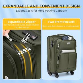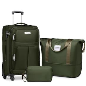 Conjuntos de bagagem Larvender Softside, 3 peças, bagagem de mão expansível 22 x 14 x 9, aprovados pela companhia aérea com rodas giratórias TSA Lock, mala leve com rodinhas com mochila e bolsa de higiene, verde militar