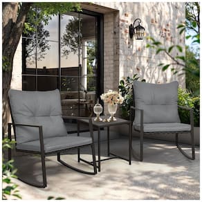 Os cadeiras de balanço ao ar livre da SUNCROWN são feitas com vime de alta qualidade e durabilidade para uso em todas as estações, com textura natural e ótima coloração. A estrutura sólida de aço com revestimento em pó garante resistência e estabilidade. O design de balanço oferece conforto excepcional, com parafusos ajustáveis na base para regular a amplitude do balanço, proporcionando uma sensação relaxante. As cadeiras espaçosas proporcionam amplo espaço para sentar confortavelmente, com pernas e apoios de braço projetados para oferecer suporte adicional. As almofadas melhoradas são compostas por camada de poliéster macio envolta em espuma grossa, garantindo um assento muito confortável. Montagem super fácil sem necessidade de ferramentas, concluída em apenas 20-25 minutos. Uma experiência de cliente incomparável.