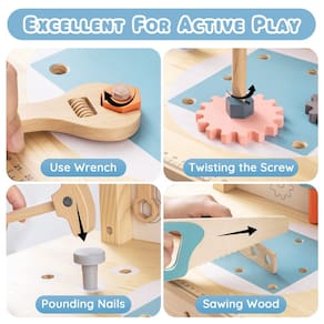 As crianças adoram imitar os mais velhos, e com o banco de ferramentas Fix-it - inclui um torno, uma chave inglesa, uma régua, um martelo e parafusos e peças de madeira - agora as crianças podem ajudar os pais na garagem ou em casa! - Banco de ferramentas infantil multifuncional: o conjunto de ferramentas infantis ROBOTIME vem com acessórios de ferramentas de madeira, incluindo um martelo de madeira, serra, chave inglesa, chave de fenda e régua. A bancada de trabalho infantil também tem uma prateleira inferior e armazenamento lateral para tudo, bem como uma superfície superior com furos para parafusos. - Material seguro: cada peça do banco de ferramentas infantil ROBOTIME é feito de madeira 100% real com tinta à base de água não tóxica segura para crianças. Cada item é bem feito com bordas arredondadas; a superfície é cuidadosamente polida e lisa sem rebarbas, para que não prejudique as mãos e a pele sensíveis das crianças durante o jogo. - Presentes perfeitos: conjuntos de ferramentas infantis perfeitos para meninos e meninas 3, 4, 5, 6, 7, 8 anos de idade. A caixa de ferramentas ROBOTIME é uma boa opção de presente para crianças, você pode brincar com elas para melhorar o relacionamento entre pais e filhos, também é um brinquedo significativo para elas construírem seus próprios artesanatos. - Estimule a imaginação das crianças: o conjunto de brinquedos de construção infantil para crianças é adequado para seu aprendizado precoce e jogos, ajudará a entender várias ferramentas e também desenvolverá suas habilidades práticas, promoverá habilidades motoras finas, pensamento lógico e habilidades de resolução de problemas, um kit de ferramentas prático para meninos e meninas. Eles serão capazes de aprender os conceitos básicos de ferramentas e como elas funcionam.