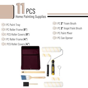 O kit de pintura Bates é um conjunto abrangente de 11 peças, que inclui uma moldura de rolo de 23 cm com 2 tampas de rolo, uma moldura de rolo de 10 cm com 2 tampas de rolo, um pincel de ângulo de 5 cm, um pincel de espuma e uma bandeja de tinta vermelha resistente. Com capas de rolo e molduras de 23 cm e 10 cm, você pode alternar perfeitamente entre pintura de áreas grandes e trabalhos menores e detalhados sem precisar de ferramentas adicionais. O pincel angular de 5 cm incluído é perfeito para cortar cantos e bordas com precisão, garantindo linhas nítidas e um acabamento profissional. A escova de espuma é fornecida para uma cobertura suave e uniforme em superfícies complexas, ideal para artesanato, retoques ou aplicações de manchas. A bandeja de tinta possui uma superfície com nervuras para carregamento uniforme de tinta e um poço profundo para reduzir a frequência de recargas, melhorando a eficiência e a limpeza da pintura. - O kit de pintura Bates é um conjunto abrangente de 11 peças, que inclui uma moldura de rolo de 23 cm com 2 tampas de rolo, uma moldura de rolo de 10 cm com 2 tampas de rolo, um pincel de ângulo de 5 cm, um pincel de espuma e uma bandeja de tinta vermelha resistente. - Com capas de rolo e molduras de 23 cm e 10 cm, você pode alternar perfeitamente entre pintura de áreas grandes e trabalhos menores e detalhados sem precisar de ferramentas adicionais. - O pincel angular de 5 cm incluído é perfeito para cortar cantos e bordas com precisão, garantindo linhas nítidas e um acabamento profissional. - A escova de espuma é fornecida para uma cobertura suave e uniforme em superfícies complexas, ideal para artesanato, retoques ou aplicações de manchas. - A bandeja de tinta possui uma superfície com nervuras para carregamento uniforme de tinta e um poço profundo para reduzir a frequência de recargas, melhorando a eficiência e a limpeza da pintura.