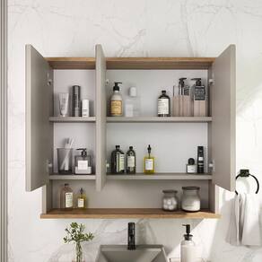 - Família: AQUA Acabamento da Gaveta: BP Melamínico Acabamento da Porta: BP Melamínico Acabamento da Prateleira: BP Melamínico Acompanha Cuba: Não Acompanha Gaveteiro: Não Acompanha Manual de Instalação: Sim Acompanha Parafusos Para Fixação Na Parede: Sim Acompanha Tampo: Sim Altura do Espelho: 56,1 cm Ambiente Principal: Banheiro codigo_ean: 7908295911939 Complexidade da Montagem: Alta: deve ser montado por um montador especializado Cor: Panna / Carvalho Cor do Produto: Panna / Carvalho Cor Flex: Não Escala de Brilho: Fosco Escala de Brilho da Gaveta: Fosco Escala de Brilho da Porta: Fosco Escala de Brilho da Prateleira: Fosco Espessura do Espelho: 3 mm Formato do Espelho: Retangular Formato Espelheira: Retangular Furação para Cuba e Torneira: Não Gaveta com Chave: Não Itens Inclusos: 1 Espelheira, 1 Gabinete, Kit Ferragens e Manual de Montagem Largura do Espelho: 24,6 cm Linha ou Coleção: Aqua Manual de Montagem e Instalação: https://product-hub-prd.madeiramadeira.com.br/312557714/documents/85894736-3256-4eef-bfea-32c14a7691b13134141183017550862676205.pdf Marca: Estilare Material da Gaveta: MDF Material da Porta: MDF e Espelho Material da Prateleira: MDF Material do Puxador da Gaveta: Alumínio Material do Tampo: MDF Material Principal: MDF Medida da Espelheira (A x L x P): 74,5cm x 76cm x 16,5cm Medida do Gabinete (A x L x P): 62cm x 76cm x 38cm Montagem Flex: Não Necessita Montagem: Sim Origem do Produto: Nacional Peso: 51,88 kg Peso Máximo por Gaveta: 5 kg Peso Máximo por Prateleira: 10 kg Possui Espelheira: Sim Possui Gabinete: Sim Possui Gavetas: Sim Possui iluminação: Não Possui Nichos: Não Possui Pés: Não Possui Porta de Vidro: Não Possui Portas: Sim Possui Recorte No Tampo Para Cuba: Não Possui Recorte No Tampo Para Misturador: Não Possui Rodízio: Não Possui Sifão: Não Possui Tampo: Sim Possui Tampo de Vidro: Não Produto Montado: Sim Quantidade de Espelhos: 03 Espelhos com Tamanhos Iguais Quantidade de Gavetas: 03 Quantidade de Portas: 05 Quantidade de Prateleiras: 05 Recomendações de Uso, Manutenção e Limpeza: Limpar com um pano levemente umedecido Sistema de Montagem: Parafusos, cantoneiras, minifix e cavilhas Suporte para Toalheiro: Não Tamanho do Espelho (A x L): 56,1cm x 24,6cm Tamanho do Gabinete: Médio: de 60cm a 80cm de largura Tamanho do Produto: 136,5cm x 76cm x 38cm Tipo de Corrediça da Gaveta: Metálica Telescópica Tipo de Dobradiça/Corrediça da Porta: Com Amortecedor Tipo de Fixação do Espelho: Silicone Tipo de Gabinete: Gabinete Aéreo Tipo de Porta: Abrir Tipo de Puxador da Gaveta: Externo Tipo de Puxador da Porta: Alumínio Válvula indicada: Não específica