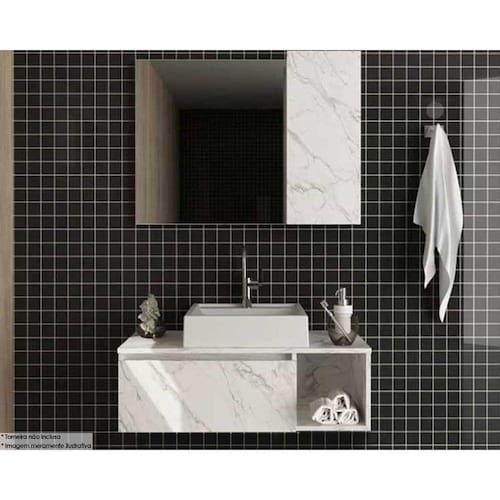 Gabinete de Banheiro Suspenso BN3601 1 Porta 80cm cor Mármore Branco - Tecno Mobili