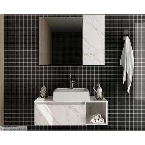 Dimensões(Cm): Comprimento(Profundidade): 38cm x Largura: 40cm x Altura: 10cm Certificação de Qualidade - Qualidade Aprovada Estrutura do Móvel - Estrutura em MDF Material da Cuba - Cuba em Mármore Sintético Quantidade de Prateleiras - 1 Garantia - 3 meses Certificação de Qualidade - Qualidade Aprovada
