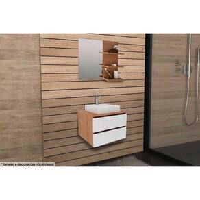 Conjunto De Banheiro Armário C/ Espelho Bn3608 E Balcão Suspenso Bn3607 C/ Cuba Pia Bn3630 60cm Cor Amêndoa/branco - Tecno Mobili
