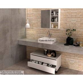 Conjunto De Banheiro Balcão C/ Rodizios Bn3603 S/ Cuba 80cm E Armário C/ Espelho Bn3609 Branco - Tecno Mobili