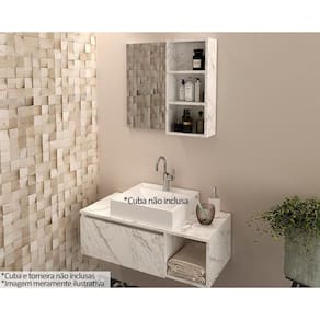 Gabinete de Banheiro Suspenso BN3601 s/ Cuba 1 Porta 80cm cor Mármore Branco - Tecno Mobili