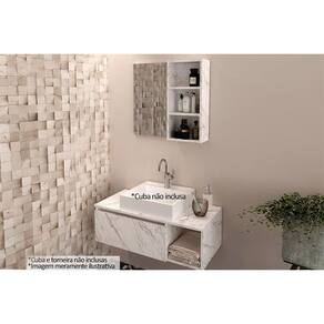 Gabinete de Banheiro Suspenso BN3601 s/ Cuba c/ 1 Porta 80cm Mármore Branco - Tecno Mobili