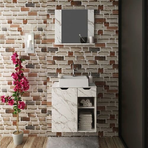Imagem meramente ilustrativa. A decoração do ambiente não acompanha o produto. Altura do Conjunto: 61.5 cm Ambiente: null Ambiente Principal: Banheiro codigo_ean: 7909903807996 Cor: Mármore/Branco Cor do Produto: Mármore/Branco Informação Complementar: 1x Gabinete Suspenso para Banheiro 60cm Mármore Branco Largura: 60 cm Altura: 61,5 cm Peso: 16,25 kg Profundidade: 38,7 cm Necessita Montagem: Sim