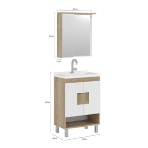 O conjunto de banheiro completo Nyon 60cm é ideal para pequenos espaços, pois tem apenas 38cm na sua profundidade e 60cm no seu comprimento, mas mesmo sendo pequeno ele tem suas características e qualidades a parte, pois possui um detalhe especial nas suas portas, sendo uma tela no balcão e espelho na porta da espelheira. Ainda no balcão tem um nicho na parte inferior para guardas vários utensílios e organizar seus utensílios.