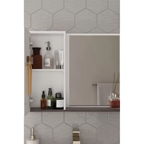 Espelheira com porta, prateleira, porta escovas e espelho;