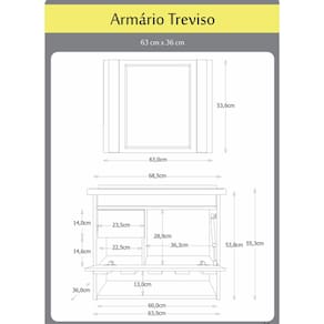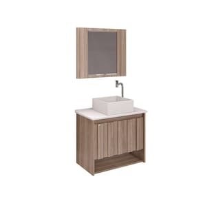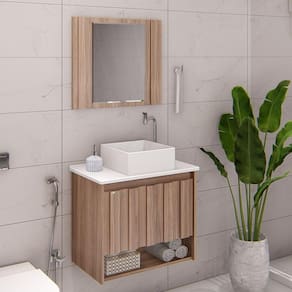 O armário kit Treviso possui composição harmoniosa entre espelheiro e armário, com design estilo ripado que o deixa mais moderno e bonito além de prático, com sua gaveta interna que facilita na organização dos objetos, nicho inferior com ótimo espaço interno e porta de bascular com pistão a gás para uma abertura suave. Sua estrutura é 100% em MDP – BP amadeirado ou texturizado, e possui várias opções de tampo e cuba de sobrepor se adequando a todos os tipos de ambientes, e ao gosto do cliente. Acabamento da Cuba: Gel Acabamento da Gaveta: BP Acabamento da Porta: BP Acompanha Cuba: Sim Acompanha Tampo: Sim Ambiente Principal: Banheiro Complexidade da Montagem: Baixa: pode ser montado por uma pessoa sozinha Cor: Nogal Sevilha/Branco Cor da Cuba: Gelo Cor do Produto: Nogal Sevilha/Branco Cor Interna: Branco Escala de Brilho: Semi-Fosco Escala de Brilho da Gaveta: Semi-Fosco Escala de Brilho da Porta: Semi-Fosco Espessura do Espelho: 3 mm Formato do Espelho: Retangular Furação para Cuba e Torneira: Não Gaveta com Chave: Não Itens Inclusos: 1 Gabinete, 1 Espelheira, 1 Cuba, Manual de Instalação e Kit Ferragens Linha ou Coleção: Treviso Manual de Especificação Técnica: https://cdn2.madeiramadeira.com.br/atributo/a-j-rorato-moveis/1369967-treviso-tecnica.pdf Manual de Montagem e Instalação: https://cdn2.madeiramadeira.com.br/atributo/a-j-rorato-moveis/1369962-treviso-instrucoes.pdf Material da Cuba: Mármore Sintético Material da Gaveta: MDF/MDP Material da Porta: MDF/MDP Material do Tampo: Mármore Sintético Material Principal: MDF/MDP Medida da Cuba (C x L x P): 35,5cm x 32cm x 13cm Medida da Espelheira (A x L x P): 53,6cm x 63cm Medida do Gabinete (A x L x P): 53,8cm x 63cm x 36cm Necessita Montagem: Sim Origem do Produto: Nacional Peso: 32,41 kg Peso Máximo por Gaveta: 1 kg Possui Espelheira: Sim Possui Gabinete: Sim Possui Gavetas: 01 Possui iluminação: Não Possui Pés: Suspenso Possui Portas: 01 Possui Rodízio: Não Recomendações de Uso, Manutenção e Limpeza: Nunca utilize esponja tipo bombril para a limpeza de seu armário e pia e nem produtos abrasivos, para limpeza utilize uma flanela limpa e seca. A exposição a luz solar pode modificar a cor único do produto. Sistema de Montagem: Parafusos Tamanho do Espelho (A x L): 53,6cm x 63cm Tipo de Corrediça da Gaveta: Metálica Telescópica Tipo de Dobradiça/Corrediça da Porta: Metálica Tipo de Gabinete: Gabinete Suspenso Tipo de Porta: Basculante Tipo de Puxador da Gaveta: Embutido Tipo de Puxador da Porta: Não Contém