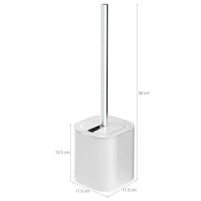 Dimensões da escova sanitária com suporte: 11,5cm (C) x 11,5cm (L) x 38cm (A);