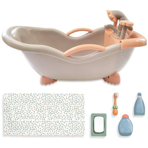 JC Toys - para manter a hora de brincar! | Conjunto de banho Baby Doll Real Working | Serve para bonecas de até 16" | Chuveiro e torneira realmente funcionam | Acessórios para brincar | 2 anos ou mais | Cores em tons de terra