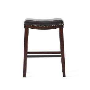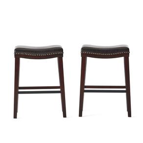 Conjunto de 2 bancos de bar Benjara Set Clare, couro sintético, acabamento em cabeça de prego, escuro, marrom, preto