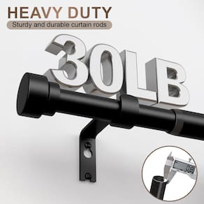 - ?Varões de cortina resistentes?Estas hastes de cortina para janela são construídas com haste de metal de 0,8 mm de espessura de 2,5 cm de diâmetro permitem que a haste de cortina forneça melhor suporte e estabilidade, reduzindo significativamente o risco de dobra e flacidez. Com suportes de ferro e parafusos resistentes, cada haste é finalizada com um processo de cozimento comprovado para uma superfície lisa. É forte o suficiente para carregar até 13,6 kg e pode suportar cortinas de vários materiais e pesos, dando a você mais liberdade para escolher o estilo de suas cortinas.