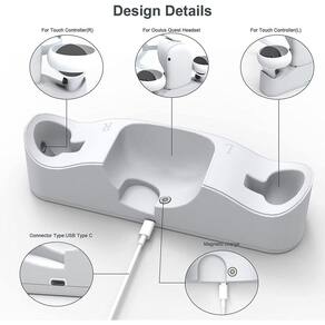 Conjunto de doca de carregamento para Oculus Quest 2, JOYTORN Oculus Quest 2 Acessórios de doca de carregamento com porta de carregamento, cabo de ligação USB-C, 2 baterias recarregáveis, 2 capas de bateria para controladores VR e auscultadores Um acessório obrigatório para o Oculus Quest 2 2: Esta estação de carregamento foi concebida para o jogador de elite, pode carregar a cabeça e o controlador VR em simultâneo Carregamento rápido: Este suporte de carregamento está equo com 4 cabeças de carregamento magnéticas, que podem carregar totalmente o fone de ouvido em 3,5 horas e o controlador em 2,5 horas. As baterias recarregáveis e as tampas do controlador poupam-no de intermináveis substituições, poupando-lhe dinheiro. Fácil de usar: Conecte a cabeça de carregamento magnética ao controle e ao fone de ouvido, coloque-a no suporte de carregamento, conecte a fonte de alimentação (5V / 2A) e você pode começar a carregar imediatamente. Preste atenção à luz indicadora: luz amarela ao carregar, luz verde quando totalmente carregada. Proteção de segurança de carregamento: Esta doca tem proteção contra sobretensão e subtensão, proteção contra curto-circuito, funções de proteção contra sobrecarga e a luz mostra luzes amarelas e verdes piscando alternadamente durante a proteção Proteção contra sobrecarga: chip inteligente integrado protege os controladores Oculus Quest 2 de sobrecarga, superaquecimento e curto-circuito Nargos Estação de carregamento para Oculus Quest 2 Controladores Um acessório obrigatório para o Oculus Quest 2: Esta estação de carregamento foi projetada Para o jogador de elite, você pode carregar a cabeça e o controlador VR simultaneamenteCarga Rápida: Este suporte de carregamento está equo com 4 cabeças de carregamento magnéticas, que podem carregar totalmente o fone de ouvido em 3,5 horas e o controlador em 2,5 horas. Baterias recarregáveis e capas de controle economizam de substituições intermináveis, economizando dinheiro. Características: 1. Adequado para controladores Oculus Quest 2. 2. Porta de entrada de alimentação tipo-c: para conectar o adaptador de alimentação para fornecer energia ao produto, a tensão de entrada é DC5V. 3. Slots de carregamento para alças esquerda e direita: Há um pino de carregamento dentro do slot. Depois de inserir a alça esquerda no slot de carregamento, a alça esquerda pode ser carregada. 4. Durante o carregamento, a luz LED é um indicador vermelho; quando o carregamento estiver concluído, o indicador está verde; não há luz indicadora após a remoção do controlador. ?Parâmetros técnicos? (1). Tensão de entrada: DC 5 V. (2). Corrente de entrada: 2A (3). Corrente de carregamento da alça esquerda/direita: =600mA x 2. (4). Capacidade da bateria: 1850 mAh Acessórios do produto: 1 base de carregamento. 1 cabo de carregamento USB para Tipo C. 2 baterias recarregáveis especiais. 2 tampas de bateria com alça esquerda e direita. 1 manual do usuário (idioma espanhol não garantido).