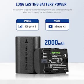 Uma bateria de substituição completa significa tudo na fotografia ao ar livre. Mas e quanto a dois? Este conjunto de 2 baterias LP-E6/E6N oferece à sua câmera uma vida útil prolongada da bateria para capturar mais imagens e vídeos mais longos enquanto estiver no local.