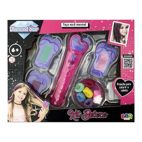 O Conjunto de beleza infantil com prancha, vem com um prancha para bricar de colorir o cabelo da criança, estimulando a criatividade e tornando a brincadeira mais lúdica!