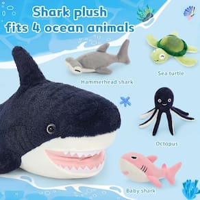 O conjunto de 5 animais de pelúcia de tubarão da MaoGoLan com 4 pequenos brinquedos de pelúcia de animais marinhos é o presente perfeito para amantes de animais marinhos, chás de bebê e lembrancinhas de festa. Este conjunto inclui uma pelúcia de tubarão, pelúcia de tartaruga, tubarão-martelo, pelúcia de polvo e um pequeno animal de pelúcia de tubarão rosa. Cada brinquedo de pelúcia é feito de materiais de alta qualidade para garantir durabilidade e suavidade. A pelúcia de tubarão apresenta detalhes realistas que fazem com que pareça um tubarão real, enquanto os brinquedos de pelúcia tartaruga, tubarão-martelo, polvo e tubarão rosa são igualmente adoráveis e fofos. Estas pelúcias com tema oceano vêm com uma bolsa conveniente com zíper que pode ser usada para armazenar itens pequenos ou como decoração para chás de bebê e festas. O conjunto oferece companhia calorosa para crianças e adultos, tornando-o um presente ideal para aniversários, Natal ou qualquer ocasião especial. Se você está procurando um presente exclusivo para um entusiasta de animais marinhos ou uma adição fofa à sua própria coleção de pelúcia, o conjunto de animais de pelúcia de tubarão MaoGoLan com 5 peças certamente trará alegria e prazer. Prepare-se para mergulhar nas profundezas da imaginação com essas criaturas marinhas adoráveis e abraçáveis. - Conjunto de brinquedos de pelúcia marinhos 5 em 1: o conjunto de 5 peças de animais de pelúcia de tubarão MaoGoLan com 4 pequenos animais marinhos é feito de materiais amigos da pele, garantindo durabilidade e suavidade. Cada brinquedo de pelúcia, incluindo o tubarão de pelúcia, tartaruga de pelúcia, tubarão-martelo, pelúcia de polvo e pequeno animal de pelúcia de tubarão rosa, é feito com atenção aos detalhes e características realistas. - Fácil armazenamento e transporte: este conjunto de tubarões de pelúcia vem com uma bolsa com zíper que adiciona elementos decorativos e funcionais. Pode ser utilizado para armazenar o pequeno conjunto de brinquedos de pelúcia ou atuar como uma decoração encantadora. A bolsa oferece maior conveniência e garante que os brinquedos de pelúcia estejam sempre ao alcance. - Ideia de presente versátil: se você está procurando um presente exclusivo para um entusiasta de animais marinhos ou uma adição fofa à sua própria coleção de pelúcia, este conjunto de bichos de pelúcia é perfeito. Com seu design adorável e valor educacional, estas pelúcias com tema oceano oferecem companhia calorosa para crianças e adultos. Eles são um presente ideal para aniversários, Natal, chás de bebê ou qualquer ocasião especial. - Companheirismo é o melhor presente: seja uma criança ou um adulto, eles vão adorar esta série de brinquedos de pelúcia macios e fofinhos do mar. Divirta-se juntos, compartilhe felicidade e segredos. Nossos lindos bichos de pelúcia de tubarão são o presente perfeito para qualquer feriado ou qualquer ocasião. Seria ótimo compartilhar a alegria e o calor com os outros! - Alegria e prazer esperam: mergulhe nas profundezas da imaginação com essas criaturas marinhas adoráveis e abraçáveis. O conjunto de 5 animais de pelúcia de tubarão da MaoGoLan com 4 pequenos brinquedos de pelúcia de animais marinhos espalhará alegria e prazer. Com seu design adorável, qualidade premium e uso versátil, estas pelúcias oceânicas certamente trarão sorrisos aos rostos dos amantes de animais marinhos de todas as idades.