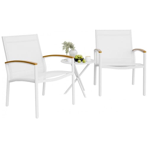 Conjunto de Bistrô de 3 Peças Shintenchi, Móveis de Pátio Pequenos com Cadeiras de Balanço de Tecido Textilene para Varanda - Branco