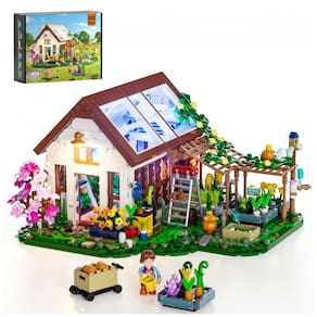 Fabricado em plástico ABS de alta precisão, o kit de 1428 peças é projetado para montagem manual avançada, compatível com coleções temáticas de fazenda e jardim. Acompanha manual de instruções e kit de iluminação LED (baterias não especificadas). Ideal para exposição e integração com outros modelos da linha Farm Flower House.