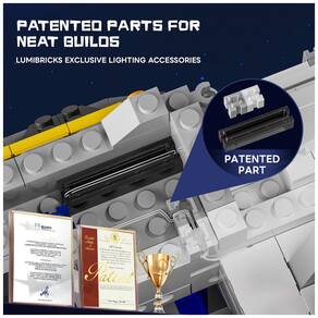O modelo utiliza sistema de iluminação com 15 pontos de LED, combinando luzes externas e internas que atravessam cápsulas transparentes para reforçar o ambiente de cidade espacial. Faixas de LED tipo COB aumentam a intensidade luminosa do conjunto, acentuando o visual tecnológico.?