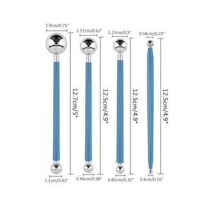 Conjunto com 04 boleadores com ponta dupla totalizando 08 pontas diferentes. Ferramenta utilizada para diversas técnicas de artesanato como, scrapbook, biscuit, origami, modelagem e muito mais. Extremamente útil e versátil. Conjunto de Boleador 04 Peças Totalizando 8 formatos diferentes Ferramenta indispensável Para Arte e Artesanato Marca: Não Informado