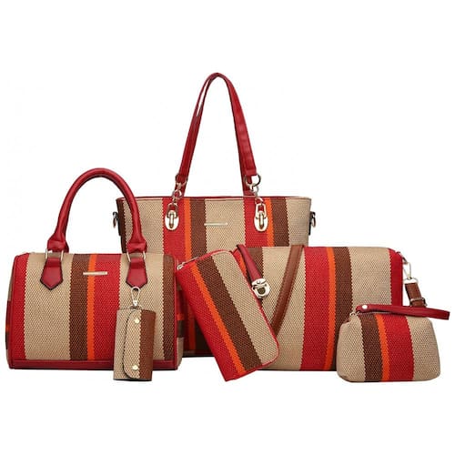 O conjunto 2E juventude inclui uma bolsa grande, uma bolsa média, uma bolsa de ombro, uma embreagem, uma bolsa e um porta chaves, oferecendo diversas opções de uso para diferentes ocasiões. As dimensões do conjunto variam de acordo com o modelo, mas todas as peças são práticas e funcionais.