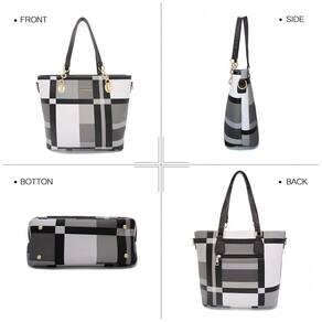 O conjunto 2E juventude inclui uma bolsa grande, uma bolsa média, uma bolsa de ombro, uma embreagem, uma bolsa e um porta chaves, oferecendo diversas opções de uso para diferentes ocasiões. As dimensões do conjunto variam de acordo com o modelo, mas todas as peças são práticas e funcionais.
