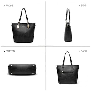 Dimensões do conjunto de bolsas bolsa grande 35,05 centímetros x 12,7 centímetros x 27,94 centímetros A bolsa Boston 25,4 centímetros x 12,7 centímetros x 19,05 centímetros A bolsa de corpo 27,94 centímetros x 10,92 centímetros x 19,81 centímetros Bolsa de mão 13,97 centímetros x 10, bolsa de cartão 6,86 centímetros x 10,92 centímetros