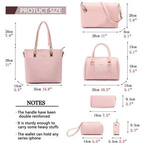 As dimensões do conjunto de bolsas para mulheres jovens 2E são sacola grande 35,05 centímetros de comprimento x 12,7 centímetros de largura x 27,94 centímetros de altura sacola média 25,91 centímetros de comprimento x 12,95 centímetros de largura x 19,05 centímetros de altura bolsa de ombro 27,94 centímetros de comprimento x 7,87 centímetros de largura x 19,81 centímetros de altura bolsa de mão 13,97 centímetros de comprimento x 9,4 centímetros de altura bolsa 19,05 centímetros de comprimento x 9,4 centímetros de altura porta chaves 5,59 centímetros de comprimento x 9,4 centímetros de altura