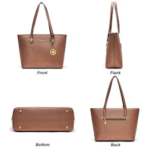 MATERIAL Feito de couro sintético de alta qualidade e forro de poliéster com ferragens de ouro duráveis. A costura é boa e corre suave e uniformemente, é agradável ao toque. Altamente anti riscos e resistente a rasgos, não é fácil ficar para a de forma. SALA Sacola Um compartimento principal, um bolso interno com zíper e dois bolsos com abertura. 5pcs Bolsa grande bolsa mensageiro carteira carteira titular do cartão. Perfeito para namorar, fazer compras, trabalhar, viajar, vocação, festa e outras ocasiões e manter seus itens diários bem organizados. DESENHOS ESPECIAIS Fechamento superior com zíper. Decorado com uma alça superior, você pode usá lo como bolsa de cima ou bolsa de ombro. Com decoração em folha de bordo parece mais fashion. DIMENSÃO Bolsa 33 x 25 x 12, Altura da alça Bolsa mensageiro 25 x 17 x , Carteira 19 x Bolsa de Mão 24 x Suporte de cartão 11 x Marca: Não Informado
