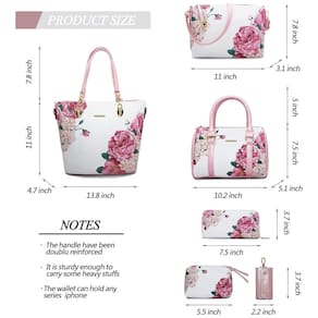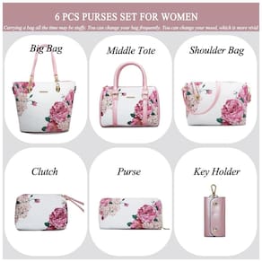 Importado Definitivamente vale a pena 2E jovens 6pcs bolsas de grife para mulheres Bolsa rosa design de correspondência de cores, interpretação de um senso de moda simples. Design de interior com várias camadas, você pode facilmente em qualquer situação. Uma grande sacola durável pode conter um laptop ou tablet de 14 polegadas, documentos ou livros A4 e seus sapatos de salto alto favoritos. A bolsa de ombro em bolsa pode conter porta moedas, carteira longa, óculos de sol, guarda chuva, cosméticos e outros itens. A bolsa tipo clutch da E youth pode conter suas chaves, batom e outros itens pequenos Estas bolsas e bolsas 2E jovens têm hardware atualizado, pontos fortes, zíper durável, você pode usar bolsas femininas 2E jovens definidas por um longo tempo. E essa bolsa para mulher não tem cheiro, as bolsas 2E jovem para mulher podem ser um presente para aniversários, datas comemorativas, dia dos namorados, natal, formaturas, dia das mães e qualquer outro dia especial Material das bolsas 2E youth 6pcs para mulheres use couro sintético liso como material externo. A costura é bem feita, pois corre suave e uniformemente, é confortável ao toque. Altamente anti arranhões e resistente a rasgos, não é fácil de sair de forma.O material interno da bolsa 2E jovem é poliéster. Com zíperes suaves e duráveis. Dimensões do conjunto de bolsas femininas 2E jovem bolsa grande 35 x 11 x bolsa do meio 25 x 12 x bolsa de ombro 27 x 7 x bolsa de mão 13 x bolsa 17 x porta chaves 5 x . Você pode usar 2E jovens bolsas juntos ou individualmente. Adequado para uso no dia a dia Marca: Não Informado