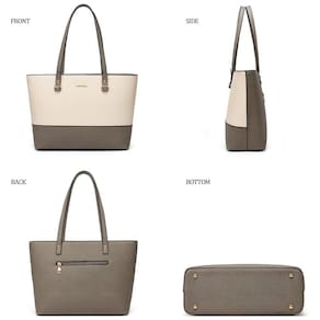 Bolsos Um compartimento principal com zíper, um bolso interno com zíper, um bolso traseiro e dois bolsos embutidos. 4 peças uma bolsa grande uma bolsa mensageiro bolsa carteira porta cartões. Perfeito para namorar, fazer compras, trabalhar, viajar, vocação, festa e outras ocasiões e manter seus itens diários bem organizados.