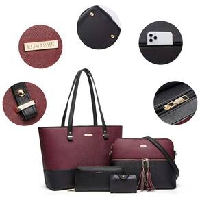 Conjunto de Bolsas Femininas em Couro Sintético 4 Peças com Carteira, Lovematch, Preto e Roxo - Branco - Regulável