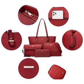 Material Couro Sintético tecido, Poliéster forro. Tamanho Bolsa grande 33 x 26,5 x 12,69 centímetros, Bolsa transversal 26 x 9,49 x 19 centímetros, Carteira 20 x 10 x 3 centímetros, Porta cartão 10,5 x 7,5 x 1 centímetros. Peso total cerca de 1,05 kg. Por favor, você pode consultar o tamanho antes de comprá lo. Obrigado. Bolsos Um compartimento principal com zíper, um bolso interno com zíper, um bolso traseiro e dois bolsos embutidos. 4 peças uma bolsa grande uma bolsa mensageiro bolsa carteira porta cartões. Perfeito para namorar, fazer compras, trabalhar, viajar, vocação, festa e outras ocasiões e manter seus itens diários bem organizados. Material de ótima qualidade, super fofo e tamanho perfeito. Bem feito e muito resistente Marca: Não Informado