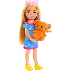 Experimente o vínculo de irmandade com a Barbie e suas irmãs! Este conjunto inclui bonecas Barbie, Skipper, Stacie e Chelsea, todas juntas. Cada irmã tem um estilo único e vem com um acessório que reflete sua personalidade. As crianças podem representar o amor especial entre as irmãs Barbie! Observe que as bonecas precisam de apoio para ficar em pé. As cores e decorações podem variar.