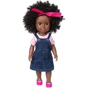 Ecore Fun Black Doll 14.5 Inch Baby Girl Doll and Clothes Set African Washable Realistic Silicone Girl Dolls -Best Gift for Kids Girls