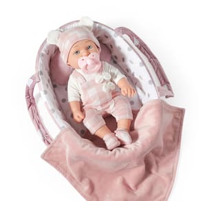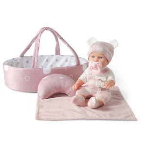 eDollable Brinquedo de boneca de 30 cm com acessórios, inclui porta-bonecas, chupeta e cobertor, primeira boneca para meninas a partir de 3 anos - Inclui: Este conjunto de brinquedos de boneca com acessórios inclui uma boneca de bebê de 30,5 cm, cama de berço para carregar bonecas, roupas removíveis, chupeta, cobertor macio e travesseiro. É adequado como primeiro conjunto de bonecas para completar a série de RPG infantil. - Fácil de transportar e armazenar: berço acolchoado de tecido para bonecas de até 30 cm, é fácil de transportar com alças macias para roupas. Enquanto isso, as crianças pequenas podem colocar os acessórios da boneca e outros brinquedos no berço para armazenamento. - Objetivo educacional: este excelente acessório de boneca estimula a dramatização criativa e estimula as habilidades de nutrição precoce. Isso ajudará as crianças a ganhar experiência em papéis e responsabilidades de adultos. - Presente ideal: este conjunto vem com uma caixa de presente pronta para uso ou para entregar como o presente perfeito para o Natal, feriados, aniversários ou qualquer outra ocasião. É a escolha perfeita para as crianças apresentarem o mundo do carinho e do amor. - 100% de satisfação: criar um sorriso e diversão é sempre o principal para eDollable! Sinta-se à vontade para entrar em contato conosco se tiver alguma dúvida.