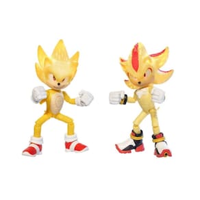 - Pacote com 2 bonecos em escala de 12,7 cm. Inclui Super Sonic e Super Shadow. Ambos os bonecos têm um recurso de iluminação, iluminando seus olhos e espinhas. O melhor pacote de batalha!