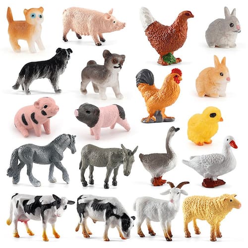 Conjunto de bonecos de animais de fazenda de 19 peças, estatuetas realistas de animais de PVC, incluindo porco, vaca, cabra, cavalo, galinha, ovelha e muito mais — Brinquedos perfeitos para crianças de 3 anos ou mais e decorações de fazenda Descrição: Material: PVC Tamanho: 2,5 a 11 cm Peso: 111 g Características: Conjunto abrangente de animais de fazenda: inclui 19 animais de fazenda em miniatura, como porco, vaca, cabra, cavalo, galinha, ovelha e muito mais, fornecendo uma e uma coleção realista de curral. Material de PVC durável: Feitas de PVC de alta qualidade, essas estatuetas de animais são projetadas para durar, oferecendo durabilidade e segurança para crianças de 3 anos ou mais. Educativo e divertido: ótimo para brincadeiras criativas, ajudando as crianças a aprender sobre diferentes animais de fazenda enquanto desenvolvem sua criatividade e habilidades motoras. Uso versátil: ideais como bonecos de brinquedos, cobertores de bolo ou decoração de fazenda, essas estatuetas trazem o charme da fazenda para qualquer espaço ou evento. Perfeito para crianças e colecionadores: uma adição deliciosa à coleção de brinquedos de qualquer criança ou a qualquer pessoa que aprecie estatuetas realistas de animais de fazenda para exibir ou brincar. O que vem na caixa: 19 x Farm Animal Figures Set