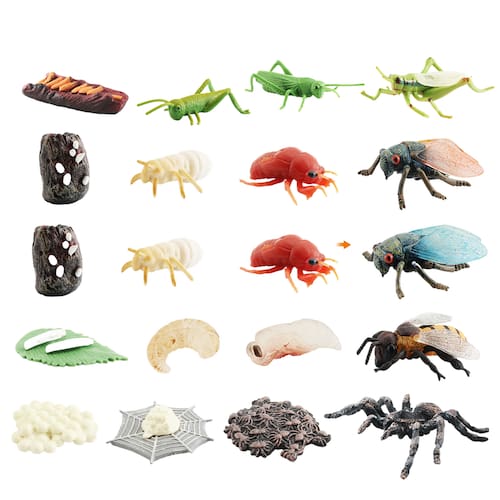 Conjunto de 20 peças de figuras do ciclo de vida de insetos — Modelos de insetos em PVC, incluindo gafanhoto, cigarra, abelha, aranha e muito mais — Brinquedos educacionais de processo de crescimento para crianças, decorações de insetos Descrição: Material: PVC Tamanho: 0,5 a 8 cm Peso: 250 g Características: Conjunto de ciclo de vida de insetos: Este conjunto apresenta 6 figuras realistas de insetos que mostram os diferentes estágios do ciclo de vida dos insetos, incluindo gafanhotos, cigarras, abelhas e aranhas respira. Construção em PVC de alta qualidade: feitas de PVC durável e seguro, essas estatuetas são projetadas para uso duradouro e fáceis de limpar, perfeitas tanto para brincar quanto para exibir. Ferramenta educacional para crianças: ideal para crianças com mais de 3 anos, este conjunto oferece uma maneira interativa e envolvente de aprender sobre metamorfose e desenvolvimento de insetos, estimulando a curiosidade sobre a natureza. Ótimos para decoração de casa: esses modelos realistas de insetos também podem ser utilizados como decorações educacionais para salas de aula, creches ou salas com temas naturais, adicionando um toque divertido a qualquer espaço. Perfeitas para entusiastas de insetos: um ótimo complemento para amantes ou colecionadores de insetos, essas estatuetas detalhadas podem ser usadas para brincar, aprender ou como parte de uma exibição ou coleção com tema de insetos. O que vem na caixa: 20 x Conjunto de figuras do ciclo de vida de insetos