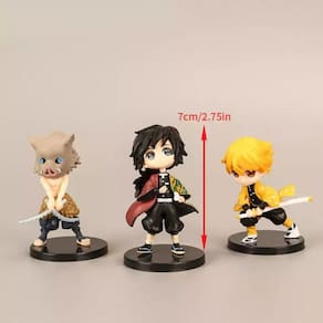 Conjunto de 6 figuras da série Demon Slayer (anime), cada figura tem um tamanho de 7 cm de altura. Quando falamos sobre personagens populares de anime, os personagens demoníacos Slayer aparecem à primeira vista. O motivo? Bem, isso se deve à popularidade atual de Tanjiro, Nezuko, Inosuke e Zenitsu em todo o mundo. Os heróis foram criados pelo mangaká Koyoharu Gotouge e animados pelo estúdio The Ufotable em suas duas temporadas de anime e filmes. Todos eles transcenderam como figuras reconhecidas por seus fãs ou conhecedores da animação japonesa. Adquira o seu!! E eu conheço a parte da cultura japonesa