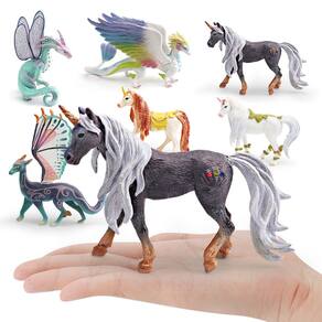 Conjunto de 6 peças de figuras Fantasy Mythical Creature — modelos de unicórnio em PVC, dragão libélula, dragão voador, estatuetas de animais mágicos para crianças, 3-21 cm Descrição: Material: PVC Tamanho: 3-21 cm Peso: 900 g Características: Design mágico: este conjunto inclui estatuetas lindamente detalhadas de unicórnio branco, dragão libélula e dragão voador, cada uma com cores encantadoras e características realistas. Material de alta qualidade: feitas de PVC durável e não tóxico, essas estatuetas mágicas de animais são seguras para as crianças se divertirem, ao mesmo tempo que proporcionam diversão duradoura. Educacionais e criativas: perfeitas para estimular a imaginação, essas figuras fantásticas ajudam as crianças a explorar o mundo das criaturas míticas enquanto desenvolvem suas habilidades cognitivas e criativas. Perfeitos para exibição: esses modelos mágicos de animais são adições impressionantes a qualquer coleção, sala temática ou espaço educacional, adicionando um toque de fantasia à sua decoração. Ideal para todas as idades: adequadas para crianças com mais de 3 anos e colecionadores, essas estatuetas incentivam brincadeiras criativas e podem ser usadas para fins educacionais e decorativos. O que vem na caixa: 6 x Conjunto de figuras Fantasy Mythical Creature