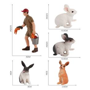 Conjunto de 5 peças de bonecos de coelho e zelador, estatuetas realistas de coelhinho de PVC, inclui coelho sentado grande, coelho em pé e fazendeiro com cenouras, de 2,5 a 11 cm de altura, perfeitas para crianças e decorações Descrição: Material: PVC Tamanho: 2,5 a 11 cm Consulte a imagem para obter detalhes específicos de tamanho Peso: 365,5 g Características: Conjunto completo de coelhos: este conjunto de 5 peças apresenta várias figuras de coelho, incluindo um grande coelho sentado, um coelho em pé, um coelhinho pequeno e um cuidador com cenouras, ideais para amantes de animais. Material de PVC durável: Feitas de PVC não tóxico de alta qualidade, essas estatuetas são feitas para durar e são seguras para crianças, tornando-as perfeitas para brincar e exibir. Divertido e educativo: ótimo para ensinar crianças sobre cuidados com coelhos e animais, ao mesmo tempo em que promove a criatividade, a imaginação e o aprendizado sobre a vida na fazenda. Perfeito para decorações: use essas charmosas figuras de coelhos e cuidadores como parte de uma cena de fazenda, diorama ou decoração de quarto para adicionar um toque divertido a qualquer ambiente. Ótimo para crianças e colecionadores: adequado para crianças de 3 anos ou mais, bem como para colecionadores que apreciam estatuetas de animais realistas e detalhadas em suas exibições. O que vem na caixa: 5 x Conjunto de bonecos de coelho e zelador