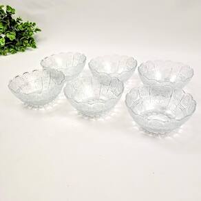 Conjunto De Bowls 6pc Para Sobremesa Nilo 5x10cm Já imaginou montar sua Mesa Posta com louças lindas e bem delicadas Aqui, na Inigual Decor, você encontra peças como esse kit de Bolws transparentes com detalhes de flores, podendo usar para sobremesas ou até mesmo usar para fazer um arranjo na mesa. Monte sua mesa e deixe a sua decoração ainda mais sofisticada.