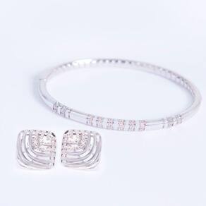 Conjunto de Bracelete e Brincos em Ródio Branco Tamanho 6cm -