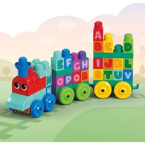 MEGA BLOKS First Builders Conjunto de blocos de montar para crianças, trem de aprendizagem ABC com 60 peças, para idades a partir de 1 ano (exclusivo da Amazon)